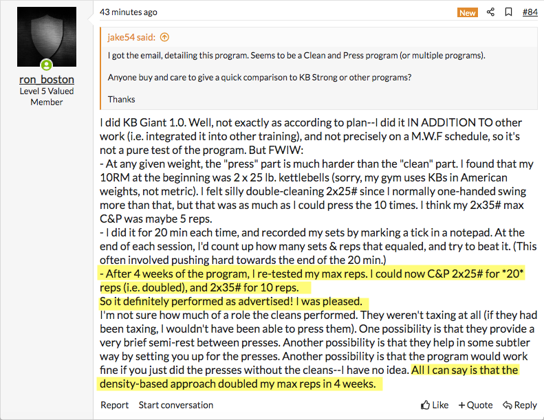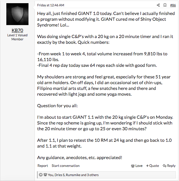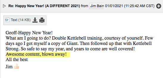 He's been one of my customers for that long, having purchased several of my products and beta-tested others, including Kettlebell STRONG!, Kettlebell RMF, and Kettlebell EXPRESS! (twice).