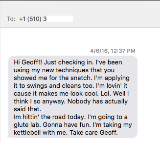 For example, within 5 minutes of working with a client demonstrating her Snatch technique, I’d diagnosed it and given her the necessary cues to fix it.